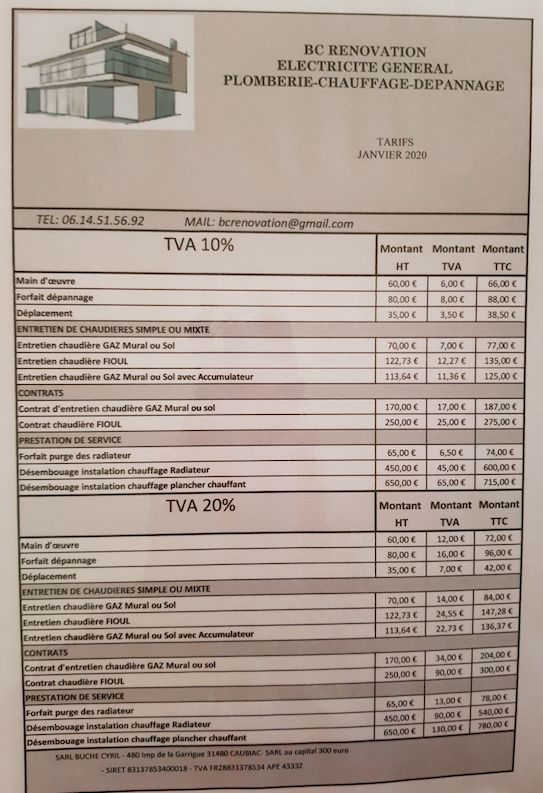 La grille tarifaire